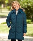 When the winter clothes come out of storage, our Chevron Quilted Coat tops them all off - in style. Made for lightweight performance with its polyester shell, lining and fill, it keeps the cold out comfortably, while its detachable faux-fur hood adds a fashionable flair. Zip front and pockets round out its appeal. Colors: Blue, Black, Ivory. * Lightweight polyester shell, lining and fill * Warm comfort with detachable faux-fur hood * Zip front and pockets * Machine wash and dry * Imported * Colors: Blue, Black, Ivory * Sizes: Misses S M L XL; Womens 2X 3X * Approx. length 35''